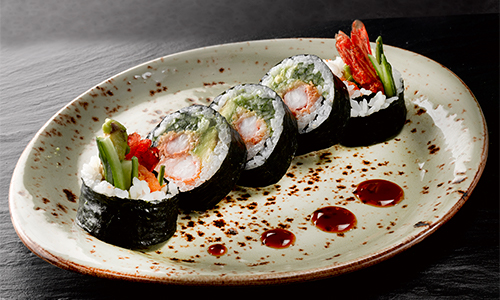 Dybstegt paneret tigerrejer med avocado, agurk og teriyaki sauce